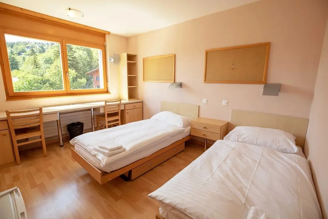 学校依山而建,从篮球场看过去,就可以看到远处连绵的雪峰,住宿环境十分的干净整洁,分为单人间和双人间,而且离学校的距离都不是很远大概走路4、5分钟。